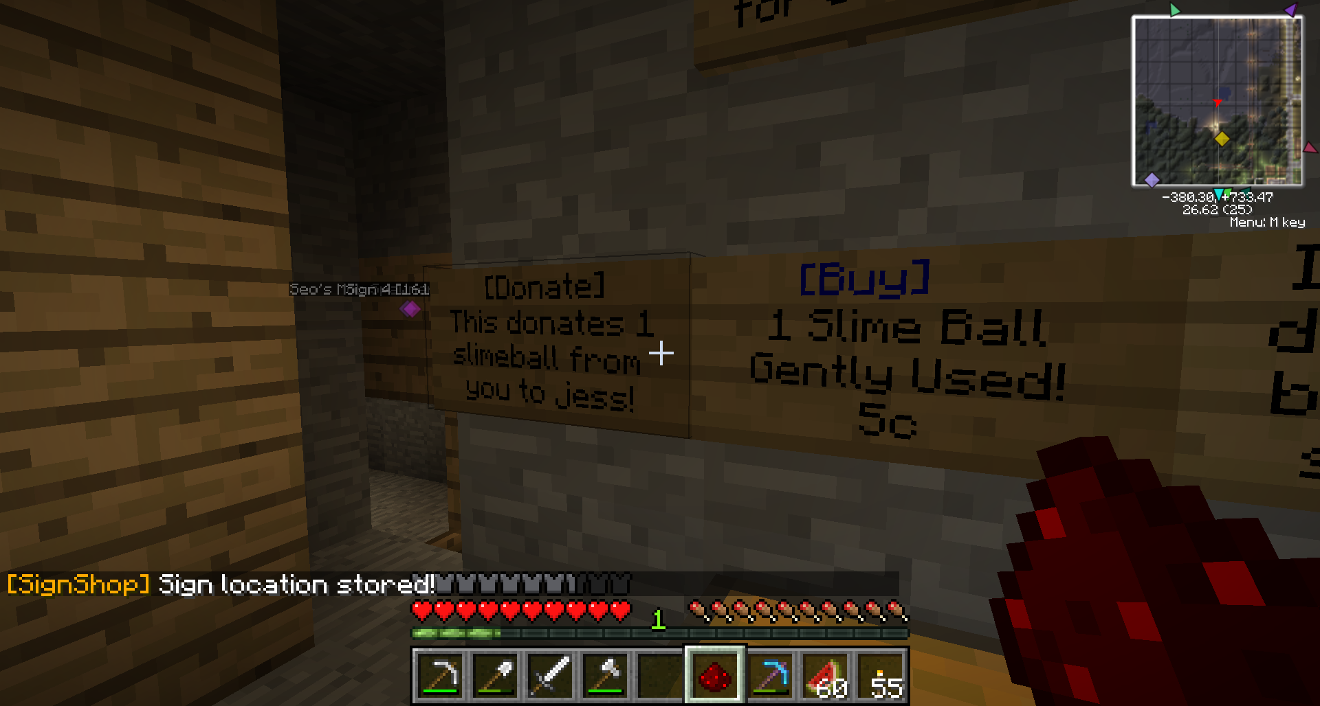 This is a quick screenshot-based primer on how to to use the SignShop plugin for buying, selling, and donating items.
